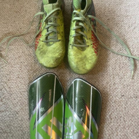 Fotball handler og leggbeskyttere til barn 8-12 år. I god stand, ingen store skader, litt skitten. Leggbeskyttere har riper, men funker som den skal. Kjøper du alt, får du 20% rabatt. Enhver koster 30kr.