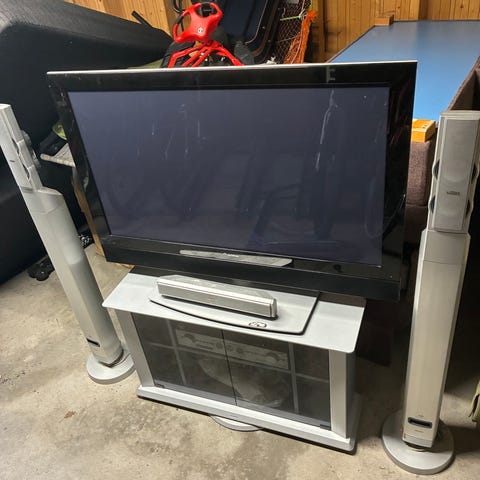 To stk 23 tommer og en stk 26 tommer. Alle fungerer. En med elektrisk fot og en med veggfeste. Følger med en fjernkontroll.