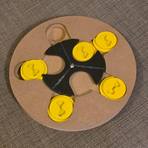 Med dette aktiveringsspillet får dere en rolig stund sammen. Spillets regler er enkle: plasser spillet på gulvet og gjem godis eller tørrfôr under spillets luker. Klar, ferdig, gå – og spillet kan begynne. Spillet aktiverer din hund og lar den arbeide for å finne frem. Dere får dessuten en herlig stund sammen.