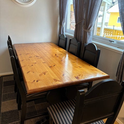 Gjør nesten litt vondt og måtte selge dette har fått den i arv men har dessverre ikke plass. Er et massivt bord tåler det meste er tatt godt vare på og er veldig stabilt. Selges til høystbydene følger også med to lemmer en til vær side