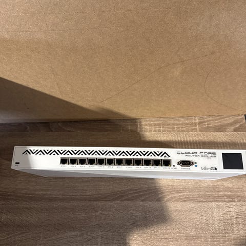 Brukt Mikrotik CCR1016-12S-1S+ selges. Kraftig router med dobbel strømforsyning. Oppgradert med nyeste firmware og foretatt factory reset. Klar for nye oppgaver.