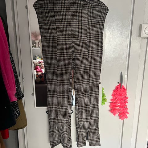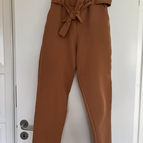 Brune bukser i fløyelsmykt stoff, veldig myke å ha på. Høy midje og rett passform. Den virkelige fargen er best synlig på det siste bildet. Perfekt for sommeren. Selges da de ikke er brukt mye.