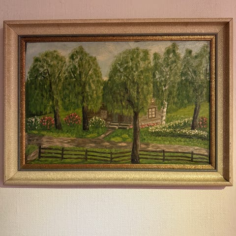 vurd. solgt. Olje på plate. Rammemål: H: 45 cm. + B: 51 cm. Ant. orig. innramming.