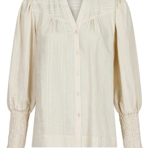 Nydelig bluse og skjørt fra love Lolita. Merket med xs men passer også godt til str S. Blusen er brukt 2 ganger og skjørtet er helt ubrukt med lappen på. Creme farget med nette små gulldetaljer, underbluse og underskjørt som er innsydd. Skjørtet ligner litt i formen på typen neo noir med flere lag, men stoffet er helt florlett. Lang knyting med dusk i halsen på blusen som er veldig dekorativ. Kan brukes hver for seg eller som et sett.