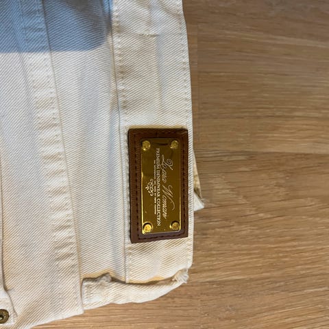 Bukse fra Zara selges. Buksen er i godt denimstoff, men ingen strech. Det er glidelås i gylfen. Buksen er i størrelse 40. Lenge fra fot til skritt er 67 cm.