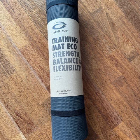 Abilica underlagsmatte i størrelse 107x217. Beskytter gulvet ved vekttrening eller legges under sykkel eller tredemølle. Er for tung til å sendes. Må hentes i Bergen, kan eventuelt kjøre ved dekning av bompenger og sånt.