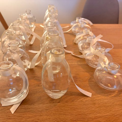 Jeg selger 18 stk vaser samlet fra mester grønn. Perfekt til bryllup og dåp. Hver vase er pakket i papp og kommer i 2 store pappesker pluss noen i mindre pappesker. Hentes i Oslo