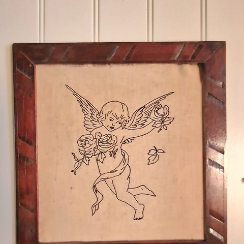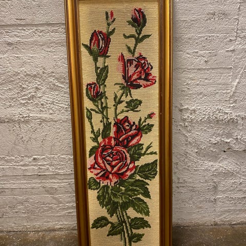 Flott antikk dekkebrikke/ dek brodert av min mormor, antikk.