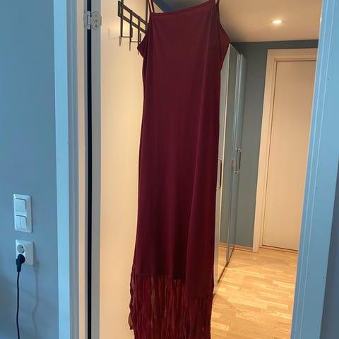 Lang kjole med fin detalj, str 2. Virker som small/liten medium. Selger den også i rødt. Kan sendes eller hentes på Løren.