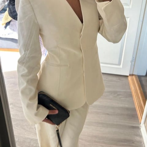 Sett med blazer og bukse i imitert skinn