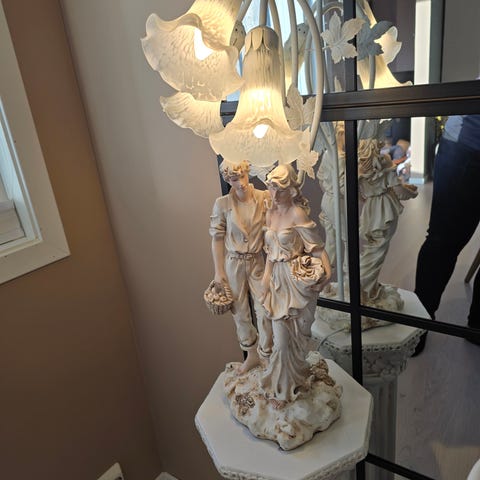 Nydelig taklampe/lysekrone i flott blåfarge og messing. Spesiell og fin lampe.