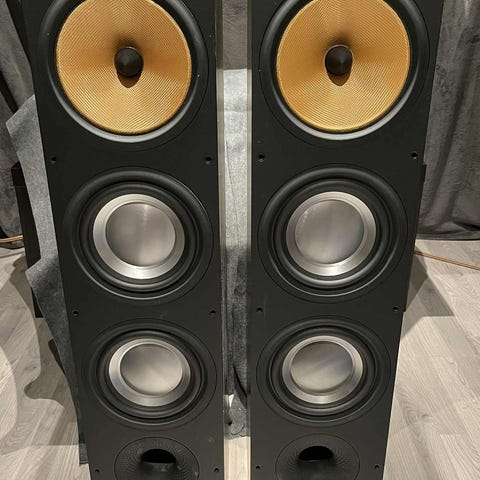 Har også centerhøyttaler og bakhøyttalere som kan følge med mot pristillegg.