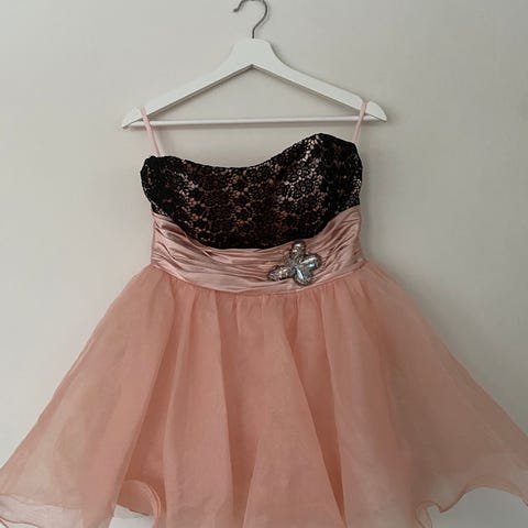 Nydelig amerikansk prom-kjole fra utvekslingsåret til min datter i USA med en søt lys lilla farge. Selges fordi hun aldri fikk brukt den💗 Hun er ca 164cm, så kjolen er litt lang for henne, men passer veldig fint med høye hæler! Skjørtet består av 4 lag med stoff/tyll + underskjørt. Lappen er fortsatt på, kjolen har bare hengt i skapet.
