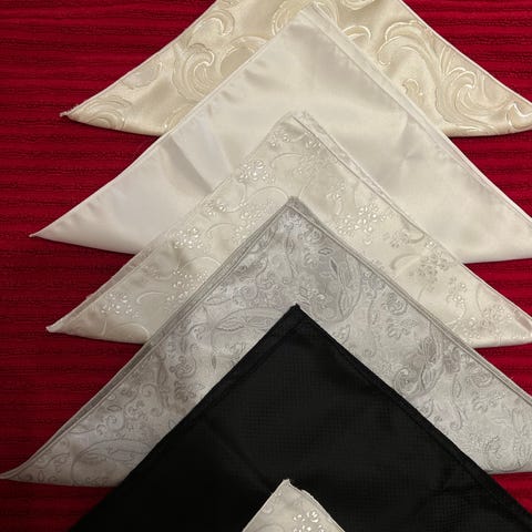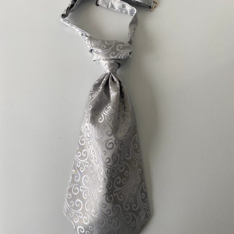 Flott brudgomsslips med tørkle selges. Nypris står på esken