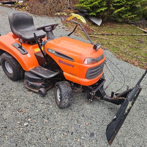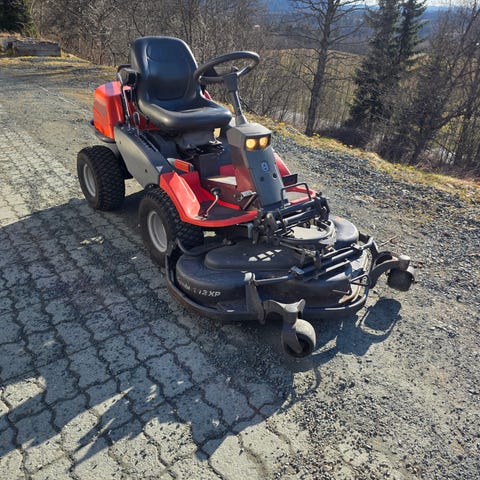 Rider med 122cm bio klippepadde som løftes og senkes hydraulisk, det samme gjelder for en 100 cm en trinns snøfreser av merke Kova som er glad i snø !