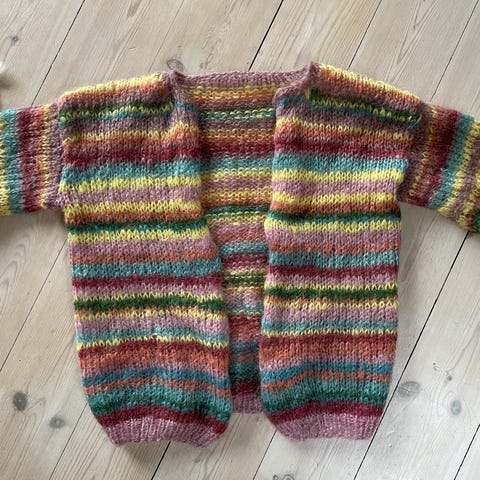 Fargerik jakke som er nydelig å på- garn som ikke klør.