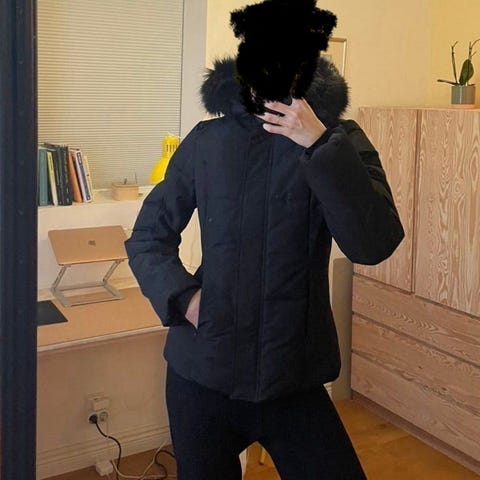 Varm og tøff svart boblejakke med shiny material i str S fra Gina Tricot selges for 250 kr. To lommer med glidelås