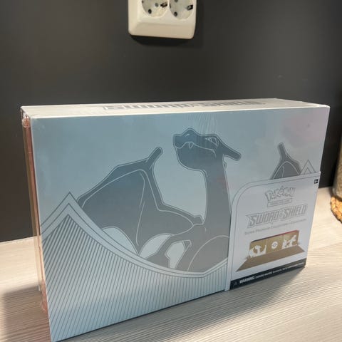 Selger en forseglet Charizard & Reshiram GX Premium Collection Boks, som blant annet inneholder 10 (3 evolving skies pakker!) pakker og et vakkert promokort av Charizard & Reshiram GX. Boksen har noen skader som en kan se på fremsiden, men disse var typiske for disse boksene.