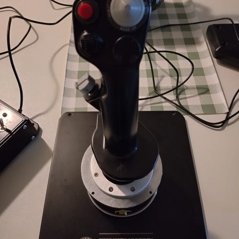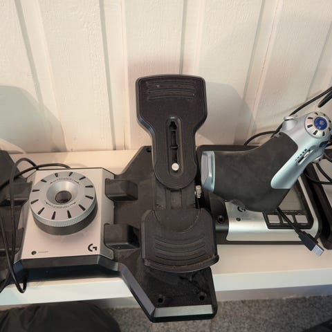 Selger en del utstyr til simulator. X-56 Hotas fra Logitech, Thrustmaster pedaler og Airbus thurstmaster stikke.