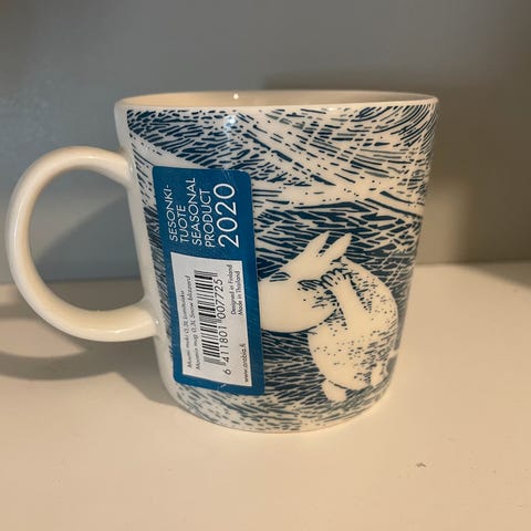 Flott Hemulen kopp, med Arabia krone stempel.pent brukt, stått i skap de senere årene.Hel og pen i glasuren, og fin farge. Selges 750,-sendes mot porto.