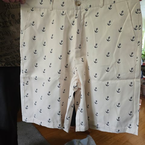 Bermudashorts og shorts i bomull til sommeren. Målene vises på bildet. Hver koster 50 kr.