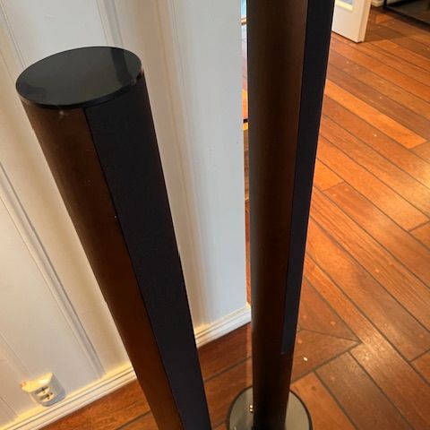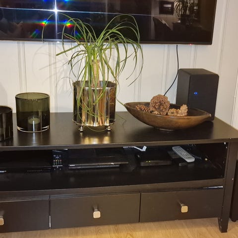Det er noen små merker på oversiden av høyttalerne. Subwooferen har noen riper og et hakk øverst i kassen.