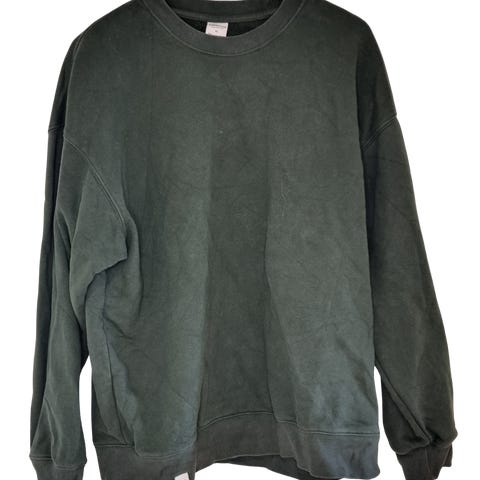 Selger en komfortabel sweatshirt fra Simwood i størrelse XL. Genseren er i en mørk gråfarge med en lett vasket look som gir den et avslappet preg. Den er myk og behagelig, perfekt for hverdagsbruk eller som en avslappet genser hjemme