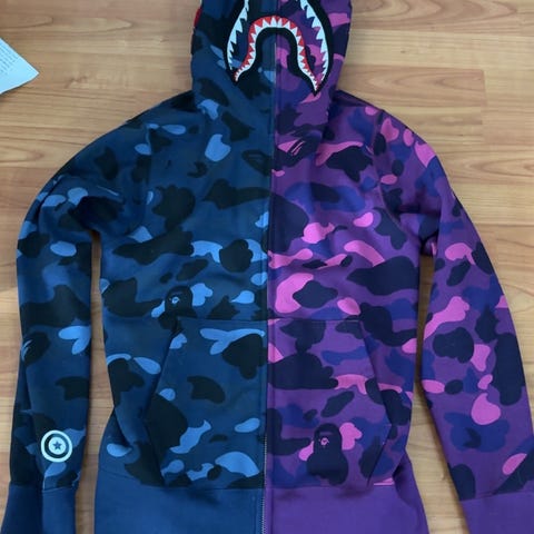 #bape #streetwear #streetstyle #blå #hettejakke #hoodie #hettegenser #genser #unisex #bapehoodie #ekte