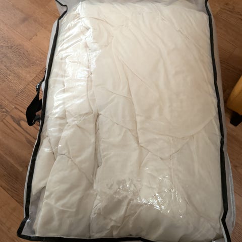 Selger en nydelig grå dyne som har vært lite brukt. En flekk som vist på bildt, men ellers helt nydelig.