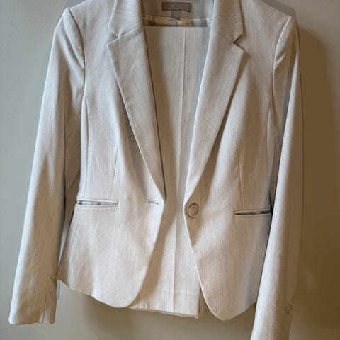 Kul, sommerlig dress i linblanding. Buksa er brukt en gang, men er uten bruksmerker. Jakka er aldri brukt og har lappen på.