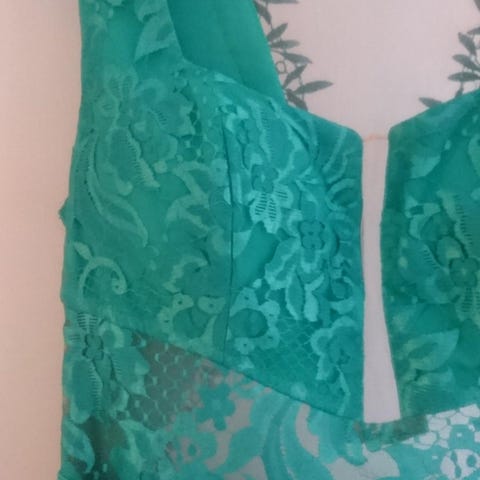 Grønn kjole fra byKriss fra en budesalong. Str 44. Skulder stropper følger med. Pris 800,-
