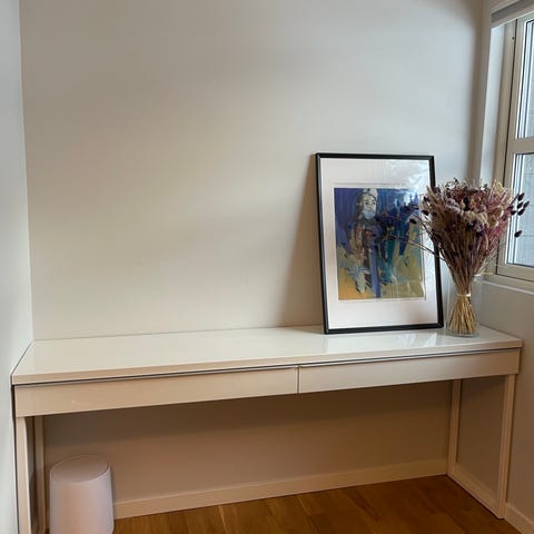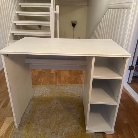 Pen brukt bord med vanlig bruksmerker Ikea Bestå burs skrivepult / sminkebord med to romslige skuffer.