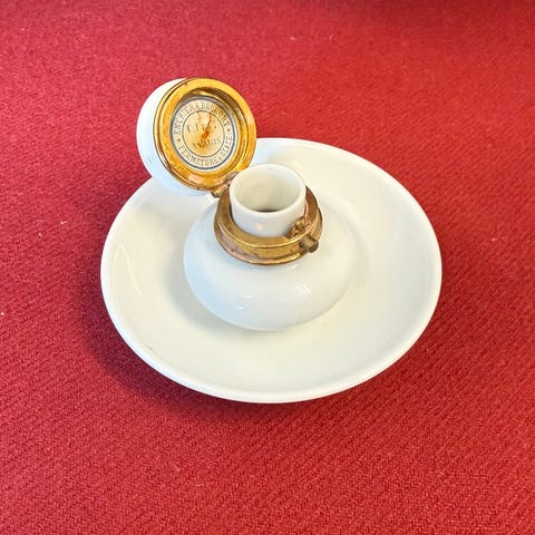 Håndmalt, dekorativt blekkhus. 12 cm i diameter
