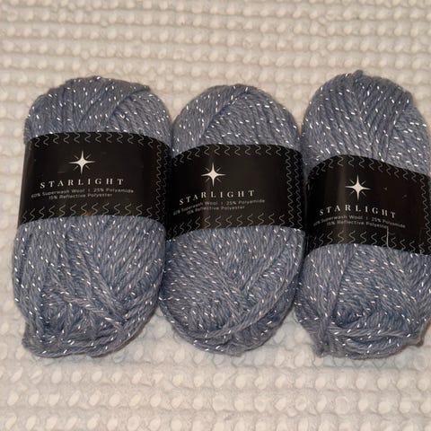 Selger 3 nøster starlight garn med refleks. Alle har samme partinummer.