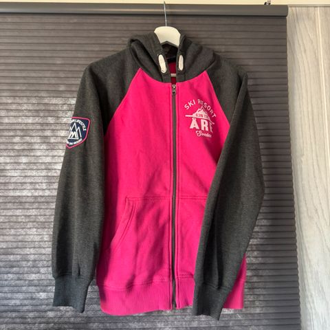 En superkul og sjelden rosa vintage hettegenser i størrelse 164. Brukt kun noen få ganger.
