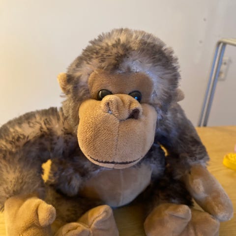 Lek Peek-a-Boo med den søte apekatten. Trykk på foten for å starte leken. Den er myk og elsker å bli kost med!