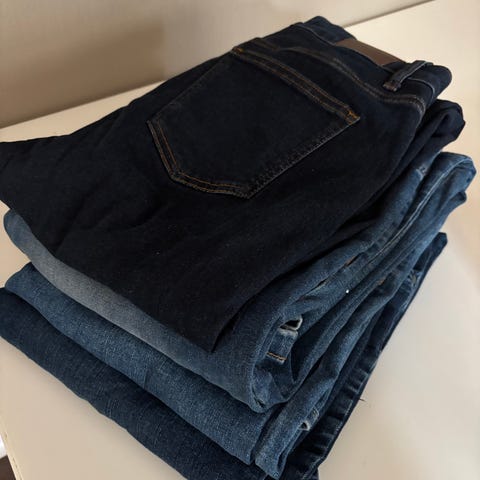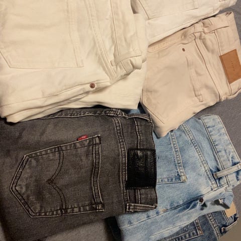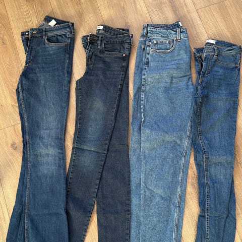 3 stk jeans str 32 selges samlet til oppgitt pris. Lys beige Mango loose relaxed jeans MNG Denim, hvit Bershka straught jeans og mellomblå H&M &Denim Bootcut high whaist jeans. Klespakke bukser Dame petit eller ungdom.