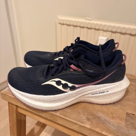 Saucony Triumph 21 i rosa selges da de ikke passer foten min. Brukt i ca. 10 km tilsammen.