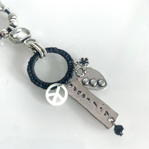 Selger et elegant og stilrent kjede fra merket EXPRESS, med perler ( ikke ekte) og klare dekorsteiner langs en sølvfarget lenke. Perfekt til både hverdags og fest!