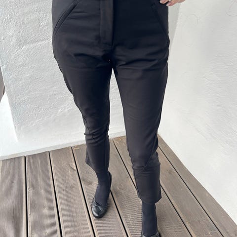 Noir bukse og blazer for dame i størrelse 34. Buksen er svart og laget i ull. Den har smal passform med hel lengde og klassisk uttrykk. Egnet til bruk sammen med blazer eller andre overdeler til både jobb og mer formelle anledninger.