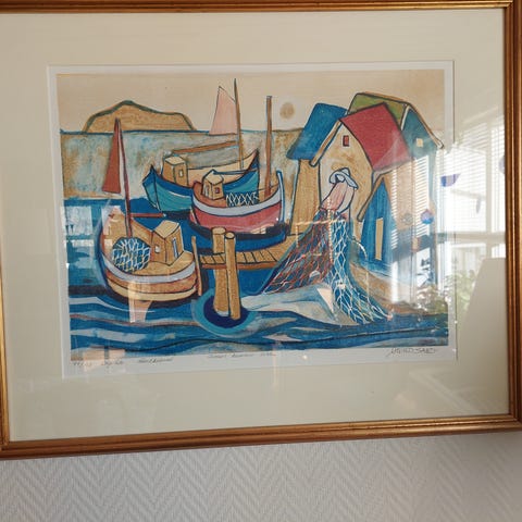 Marcel Mouly - stort litografi - motiv fra havna i friske farger