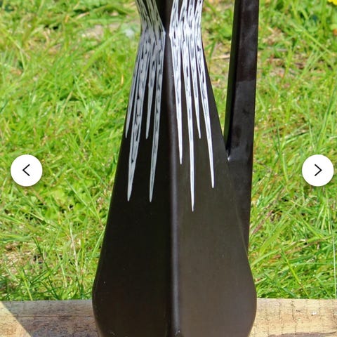 Av plommetre og bambus. Laget av trekunstner Ulf Andersen i hans verksted i Ytre Enebakk og signert på basen.
