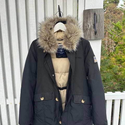 Kjolen er ny med lapp. Str. S. Brystmål fra armhule til armhule er 37 cm, midjemål fra side til side er 32 cm og hel lengde fra armhule og ned er 61 cm. 94% polyester og 6% elastan.