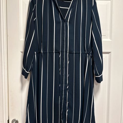 Blå/hvit stripet lang skjortekjole fra Kappahl