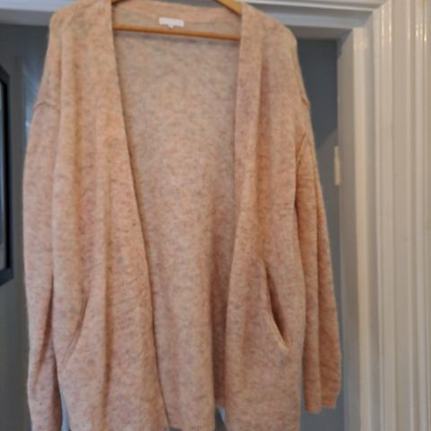 Klassisk lang cardigan i str S fra Brandelid, med flotte detaljer. Modellen heter Shelly cardigan. Pent og lite brukt. Lys brun farge.