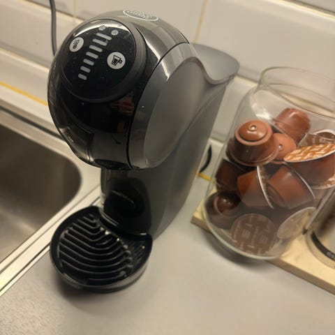 Pent brukt kapselmaskin, fungerer som den skal. Kan brukes til både varme og kalde drikker.