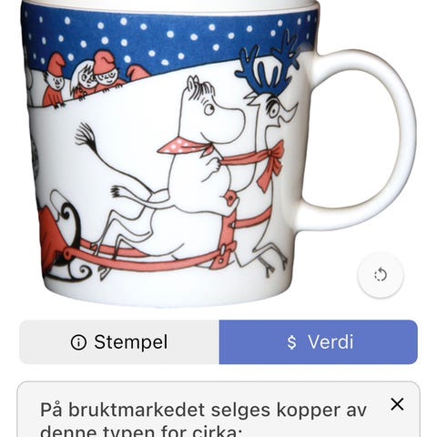 Kopper av en verdi på 53 850 kr som står oppført på "Moomugs"-appen! Pluss en asjett og 6 skåler.