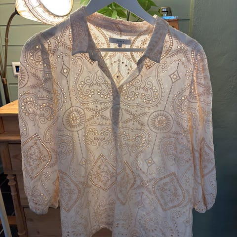 Søkeord: bomullsbluse, romantisk, blonder, blomstermønster