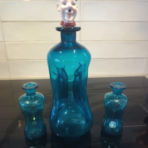 Blåturkis galss,- blåst og slepet. Noen hakk, men ingen sprekker.