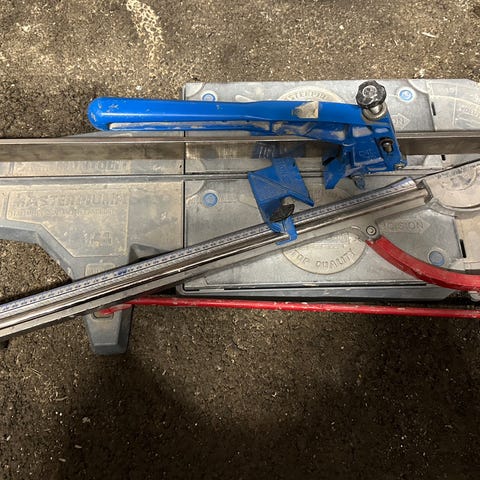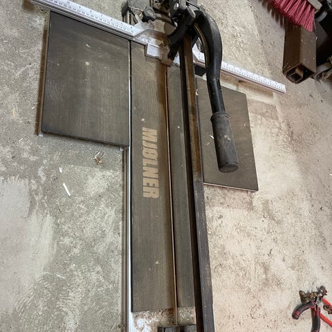 Fluskutter, visp og vannsag leies ut. Stort sett det du trenger for å legge flis 😊